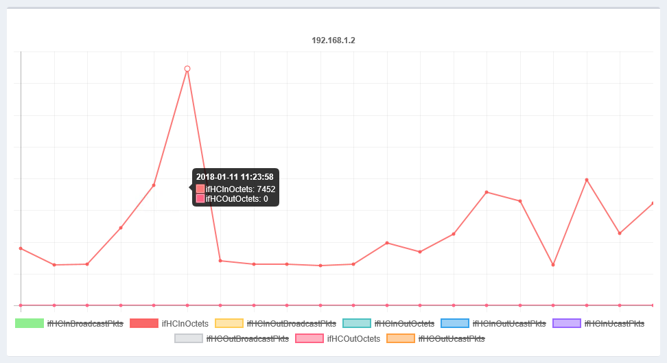 SNMPプラグインに登録されたデバイスで送受信したバイト数をグラフ表示します。 |