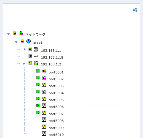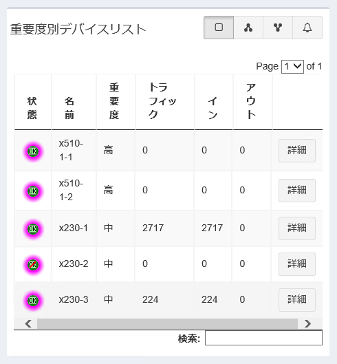 | リンクアップ状態(SNMPプラグインサーバーと疎通可能)のデバイス数が、緑色のアイコンとともに表示されます。 | |