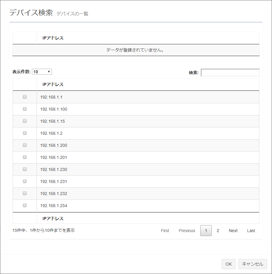 Noteデバイスを手動追加したときに、機種によっては「デバイス一覧」画面にMACアドレス、IPv4アドレス、ベンダー名が表示されない場合があります。その場合は、対象サブネットで自動探索を実施してください。自動探索の結果によっては、情報が表示されるようになります。