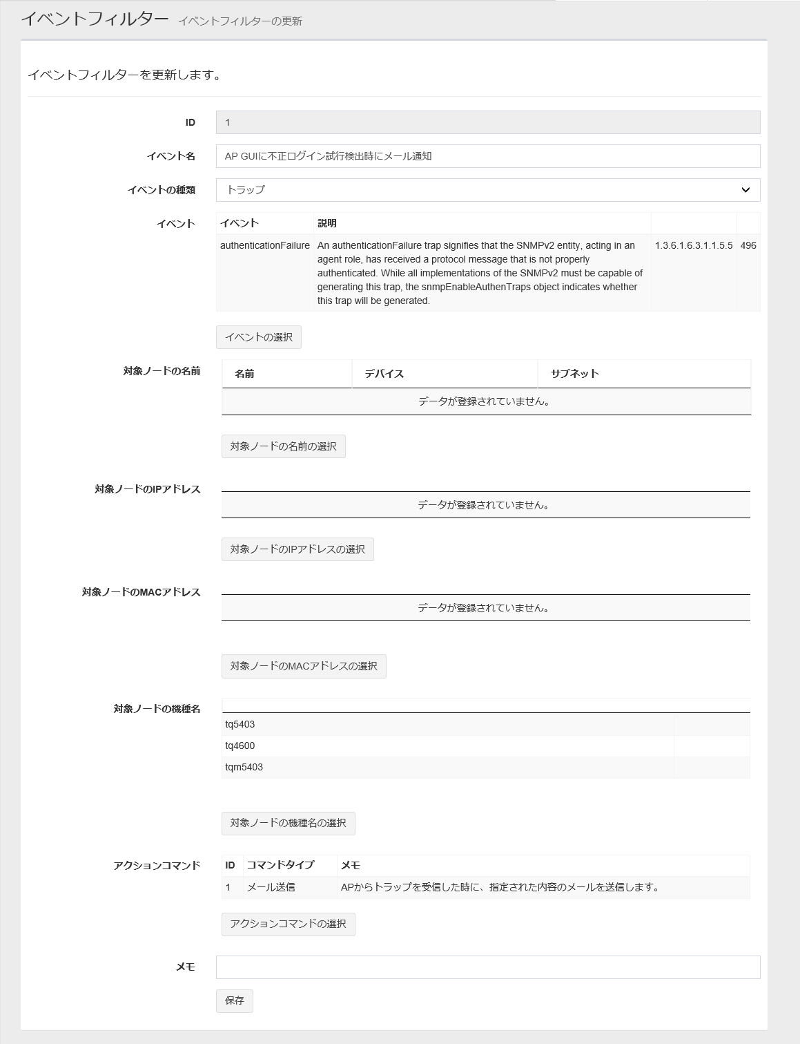 Noteイベントフィルターの「対象ノードの名前」に指定されているノードを削除する場合は、事前に該当するイベントフィルターを削除するか、該当ノードをイベントフィルターの対象から除外した上で、ノードを削除してください。