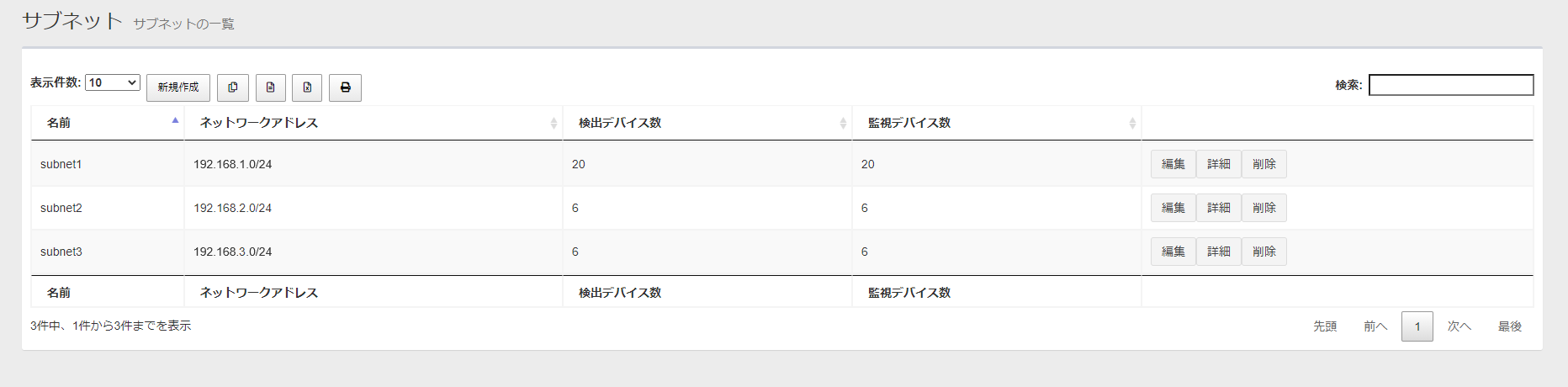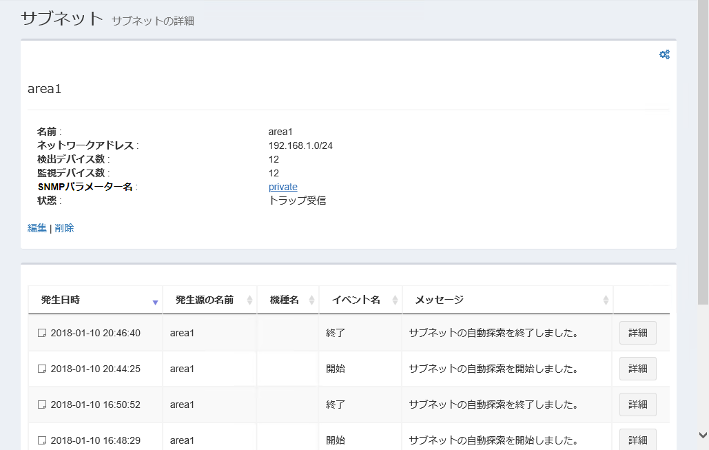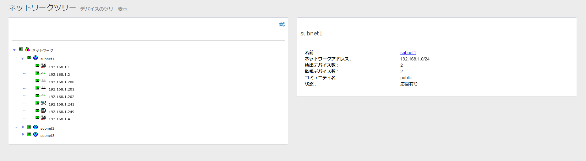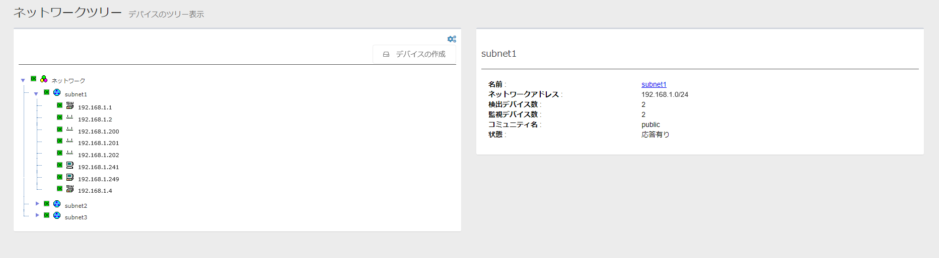 サブネットを作成すると、サブネット配下のネットワークに対してデバイスの自動探索を行います。