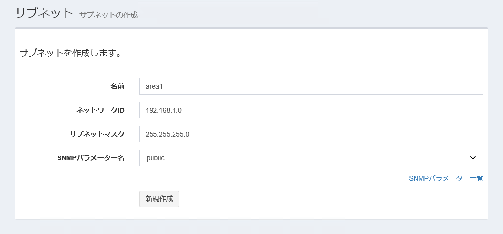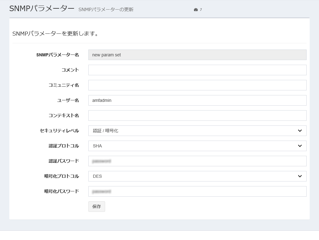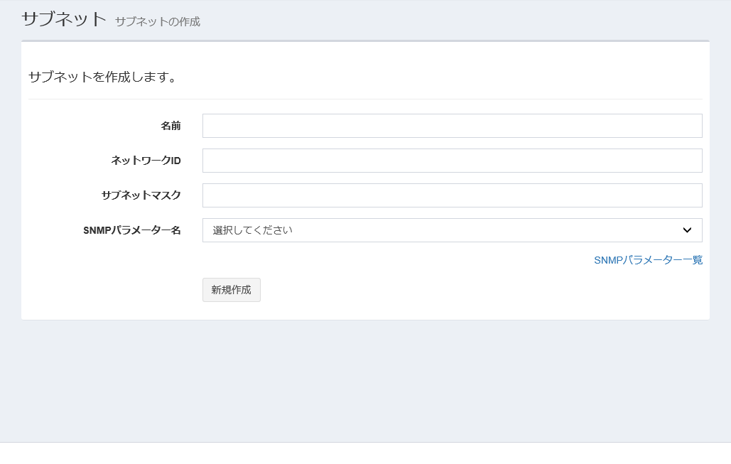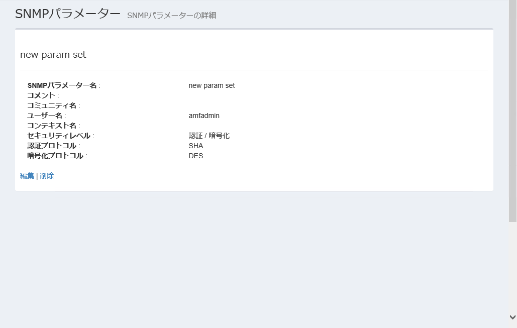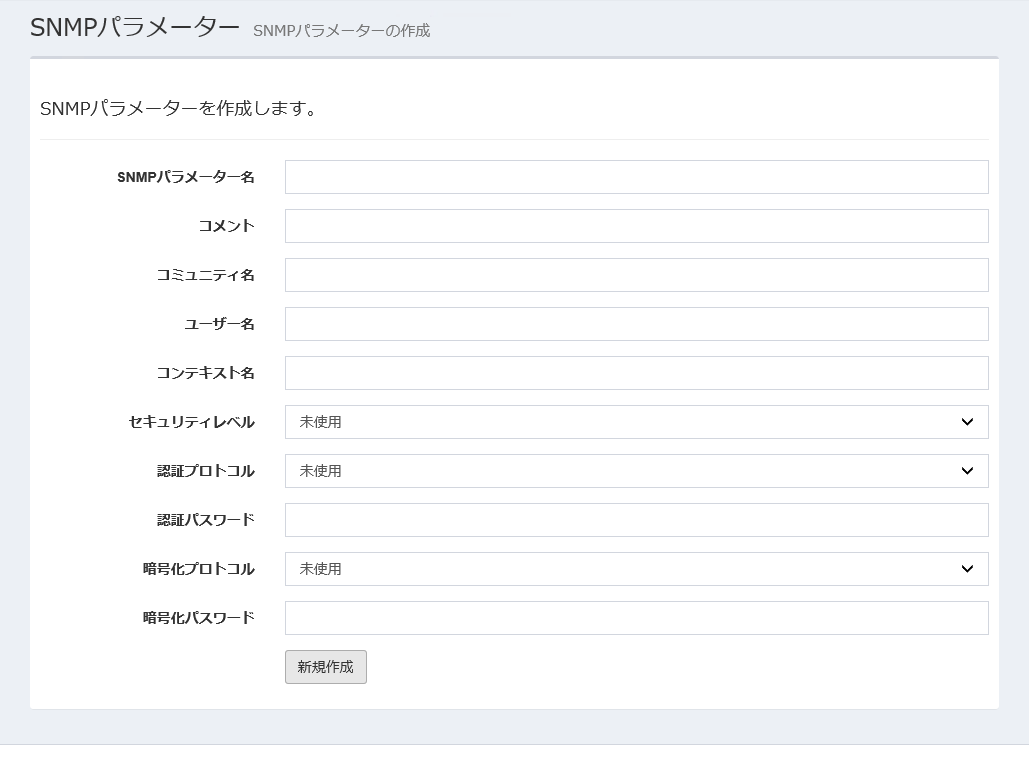 NoteSNMPパラメーターの作成、編集のために画面を移動すると、本画面に入力した内容は消去されます。