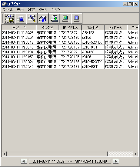 ログビューは、AAC 動作ログの閲覧画面です。ログビューを開くには、タスクビューのメニューバーから「ログ」→「ログビュー」の順に選択してください。