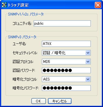 SNMPv3 トラップ を受信するには、SNMP オプションのバージョン設定が「v3」であり、かつ、トラップオプションのバージョン設定が「v3」または「すべて」に設定されている必要があります。
