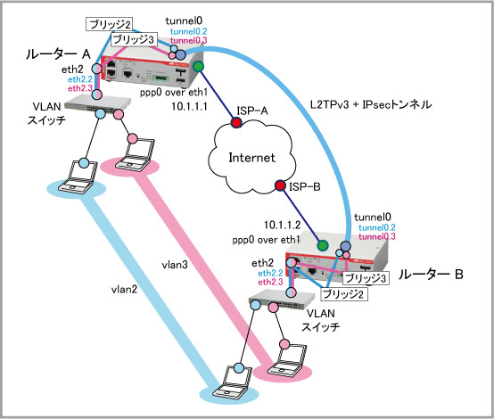 | WAN側(ppp0)IPアドレス | 10.1.1.1/32 | 10.1.1.2/32 |