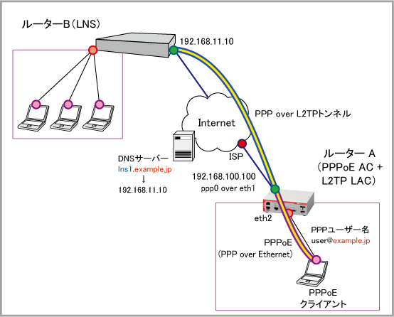 | L2TPサーバー(LNS)のアドレス取得方法 | PPPユーザー名のドメイン部分でDNS検索 |