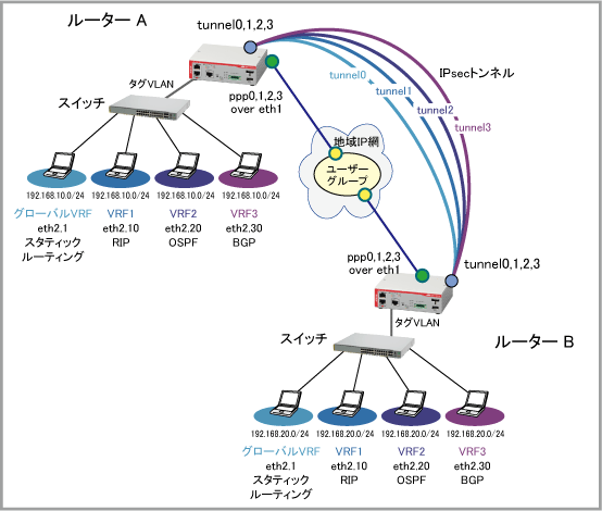 | LAN側(eth2.1)IPアドレス | 192.168.10.1/24 | 192.168.20.1/24 | |