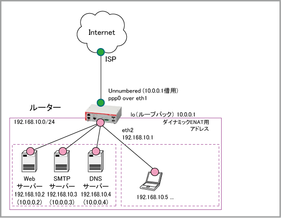 | LAN側(eth2)IPアドレス | 192.168.10.1/24 |