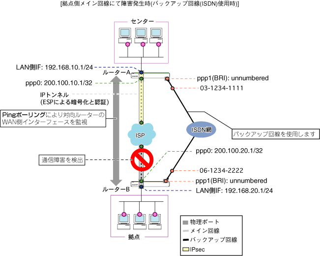 Pingポーリングによるメイン回線からISDNバックアップへの自動切り替え(インターネットVPN+ISDNバックアップ〜IPsec編〜)
