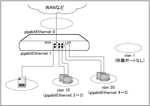Note - VLAN機能は、LAN側スイッチポートでのみ使用できます。WAN側EthernetインターフェースをVLANに参加させたり、WAN側EthernetインターフェースでVLANタグを取り扱ったりすることはできません。