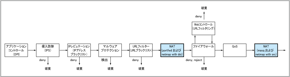 - portfwd, netmap with dst - ファイアウォールルールの前に適用