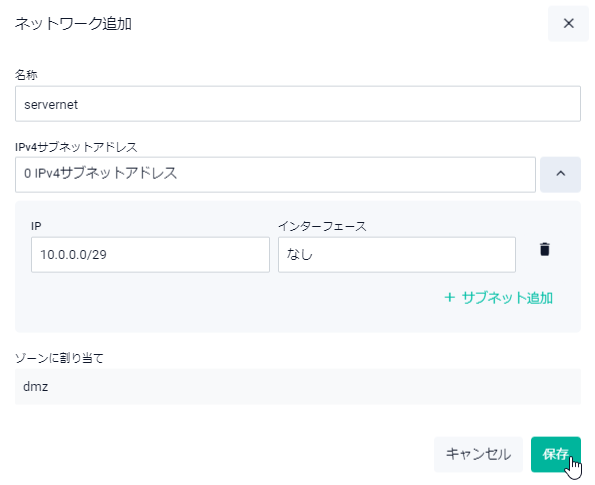 | ゾーンに割り当て | 該当ネットワークの追加先ゾーンが表示されます |