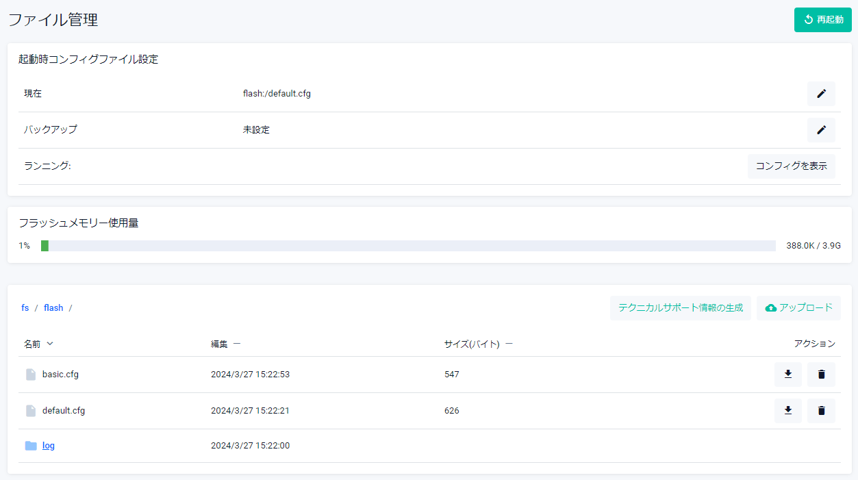 | ファームウェアファイル | 現在使用中のファームウェアイメージファイルが表示されます |