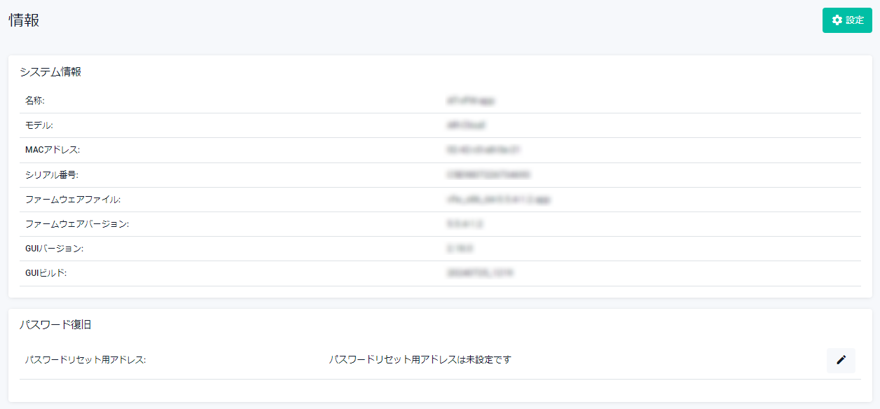| ファームウェアバージョン | 現在使用中のファームウェアバージョンが表示されます |