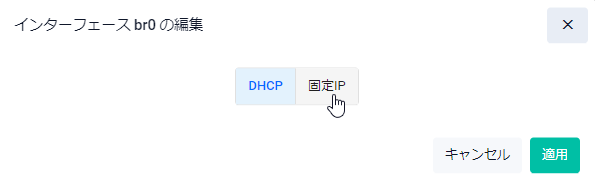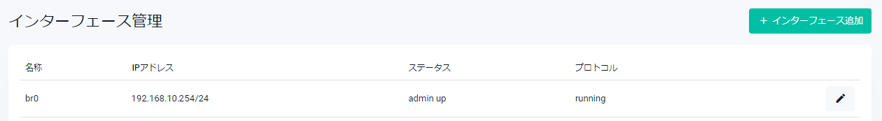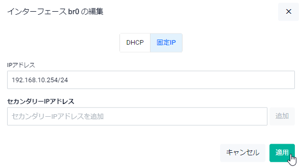 | IPv4アドレス | 192.168.10.1/24 | 未設定 |