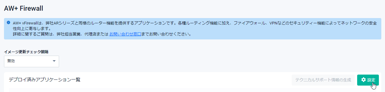 | イメージバージョン | プリインストールされているvFirewallのバージョン | 未選択 |