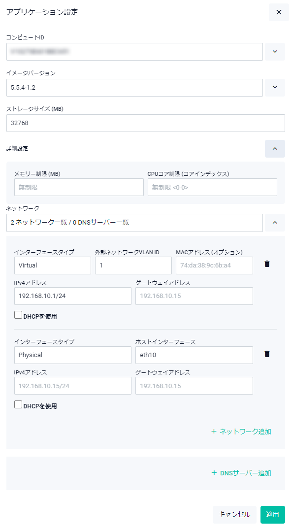 | コンピュートID | AT-NFV-APL本体のシリアル番号 | 未選択 |