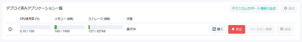 Noteストレージサイズ (MB)、メモリー制限 (MB)、CPUコア制限 (コアインデックス)は、前表の「設定内容」に記載の値以外サポート対象外となります。