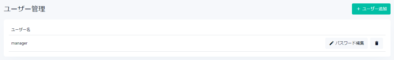 Noteすべてのユーザーを削除すると、ログインできなくなります。初期設定のユーザー名「manager」を必ず残す、またはバックアップ用のユーザーを作成しておくなど、管理には十分ご注意ください。