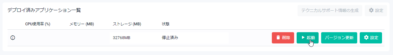 また、オフライン状態のアプリケーションがあり、「復元」ボタンが表示されている場合にもリストアできません。「復元」ボタンをクリックして「起動」ボタンが表示されている状態にするか、「削除」ボタンをクリックして該当アプリケーションを削除したあとでリストアを実行してください。