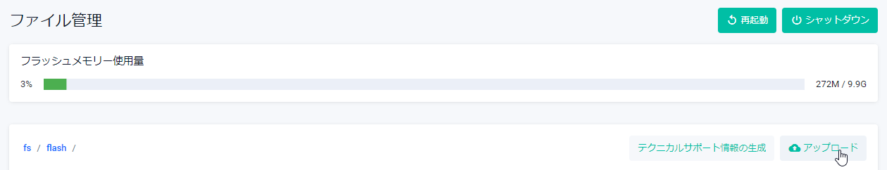 Noteアップデートを行う際は、あらかじめ不要なファイルを削除し、「ファイル管理」画面の「フラッシュメモリー使用量」でストレージに空きがあることを確認してください。
