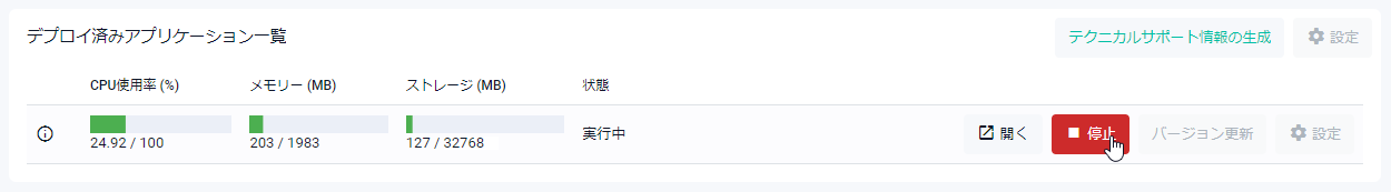Noteリストア対象のアプリケーションインスタンスが実行中の場合はメッセージが表示されリストアできません。その場合はアプリケーションを停止または削除してください。