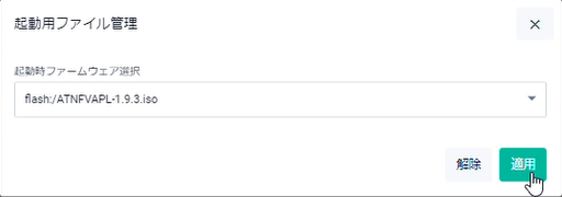 NoteAT-NFV-APLファームウェアとvFirewallアプリケーションのバージョンは、パッケージとして提供されている組み合わせのみをサポートしています。アップデート時には、AT-NFV-APLファームウェアとvFirewallアプリケーションの両方をパッケージに含まれていたバージョンに更新してください。ただし、一方のバージョンに変更がないときはもう一方のみ更新すれば結構です。