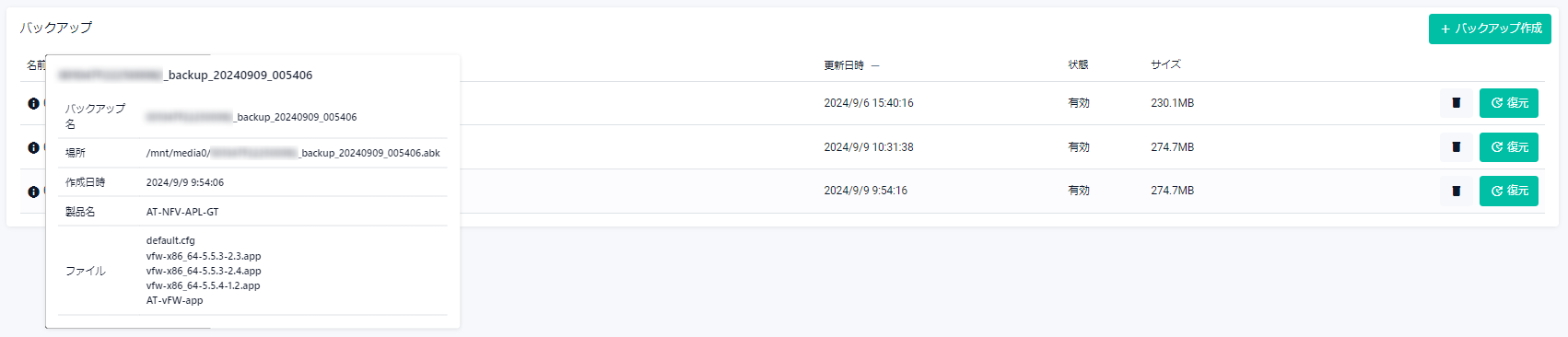 Noteこの方法でバックアップ・リストアの対象になるのは、AT-NFV-APLのGUI設定画面から設定した内容だけです。