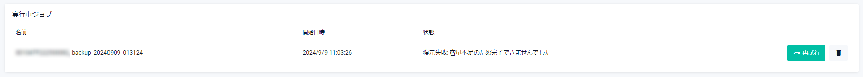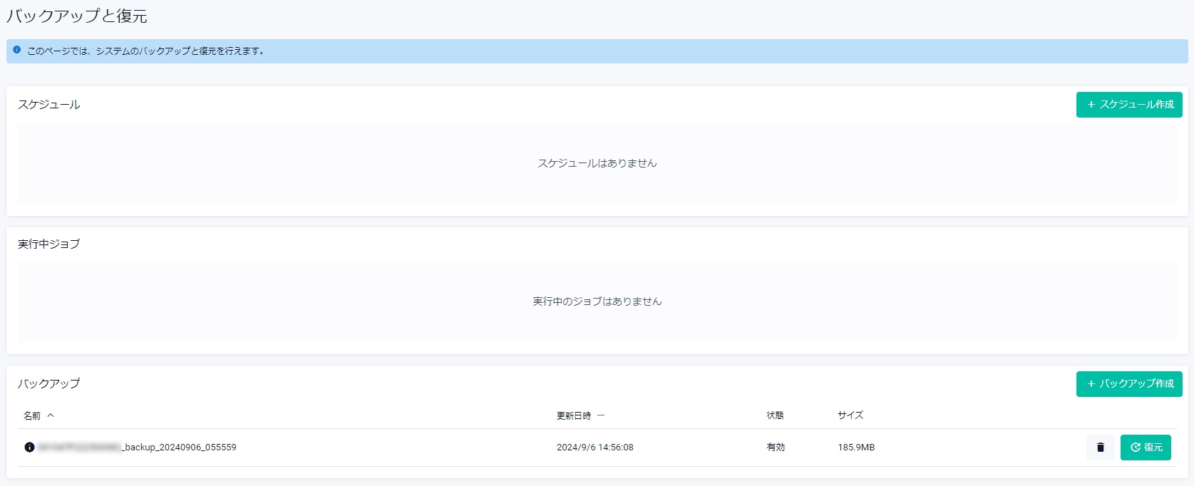 | ストレージの推定必要容量 | 復元する際に必要な、「システム」 > 「コンテナサービス」画面における「コンピュートノード」の「ストレージ」の空き容量です |