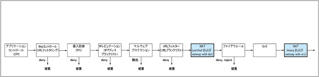 - portfwd, netmap with dst - ファイアウォールルールの前に適用
