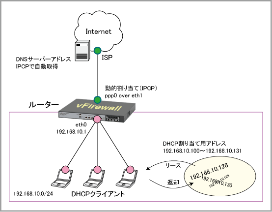 | 提供するIPアドレスの範囲 | 192.168.10.100~192.168.10.131(32個) |