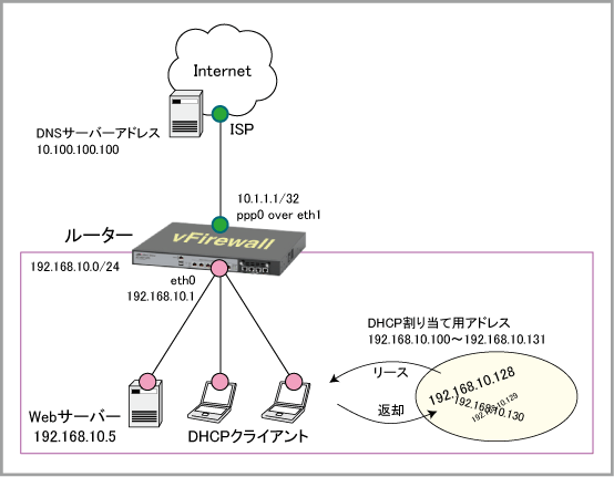 | 提供するIPアドレスの範囲 | 192.168.10.100~192.168.10.131(32個) |