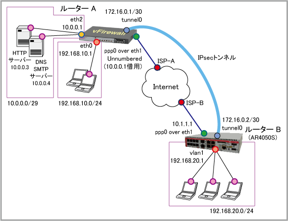| LAN側(eth0/vlan1)IPアドレス | 192.168.10.1/24 | 192.168.20.1/24 |
