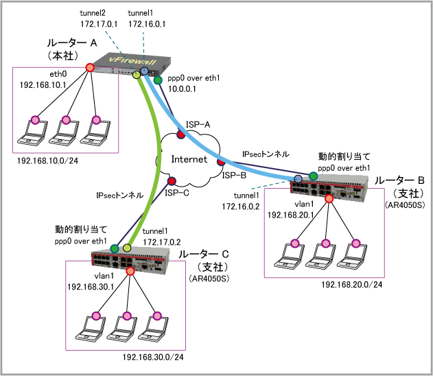 | ISP接続用ユーザー名 | user@ispA | user@ispB | user@ispC |