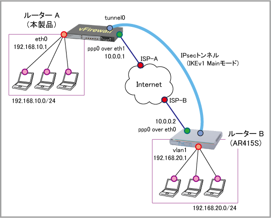 | WAN側(ppp0)IPアドレス | 10.0.0.1/32 | 10.0.0.2/32 |