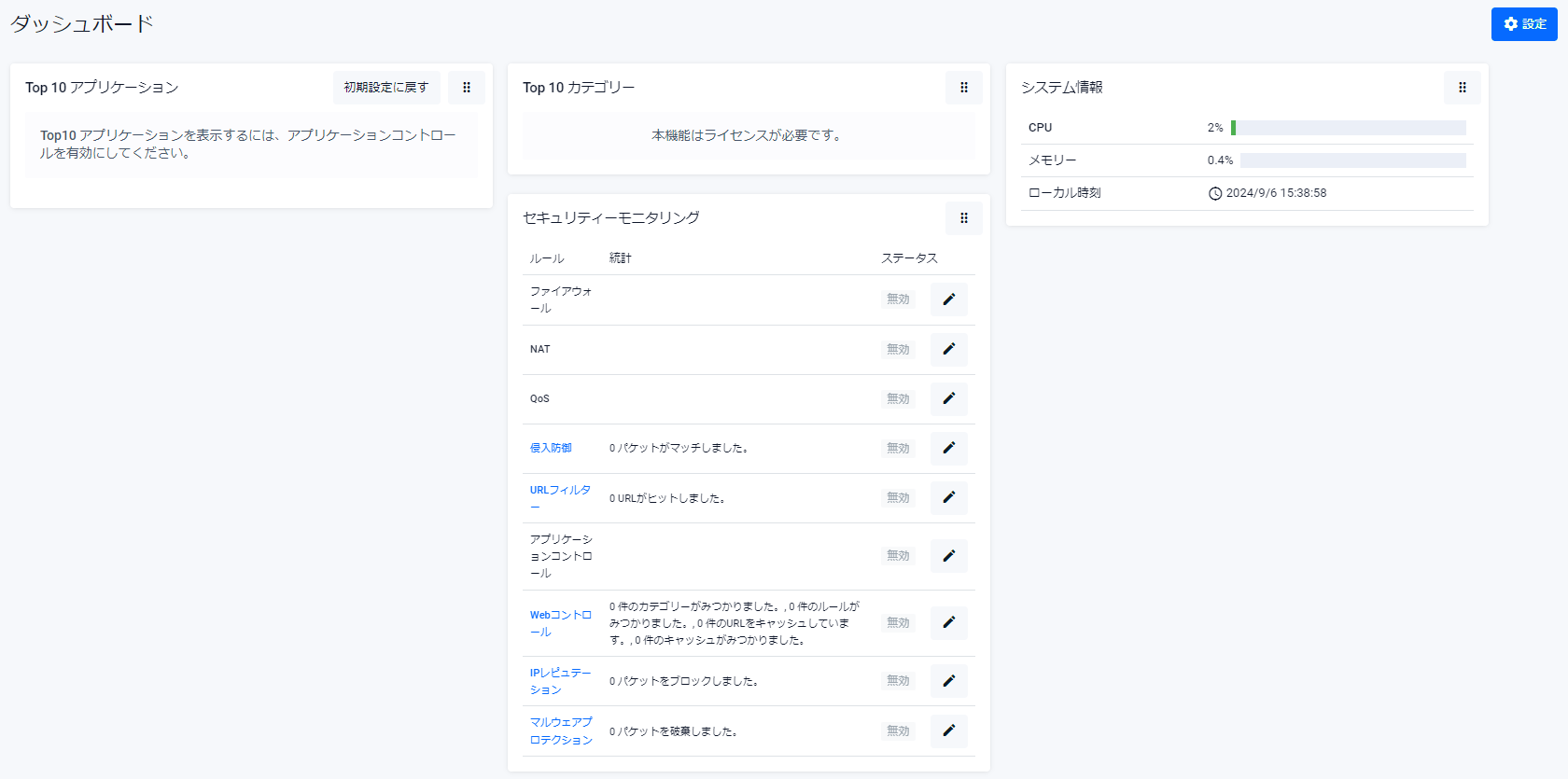 ダッシュボード画面は、各種情報を要約して表示するWeb GUIのホーム画面です。