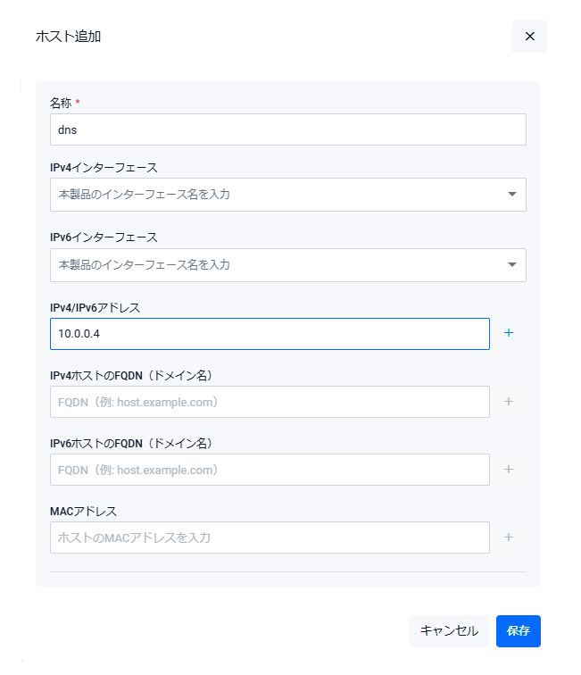 | IPv4ホストのFQDN(ドメイン名) | IPv4ホストをFQDN(ドメイン名)で登録したい場合に指定します |