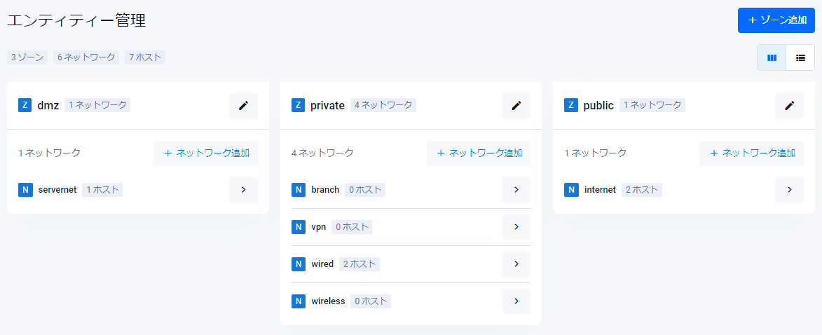 | X ネットワーク | ゾーンに所属するネットワークの数(X)が表示されます |