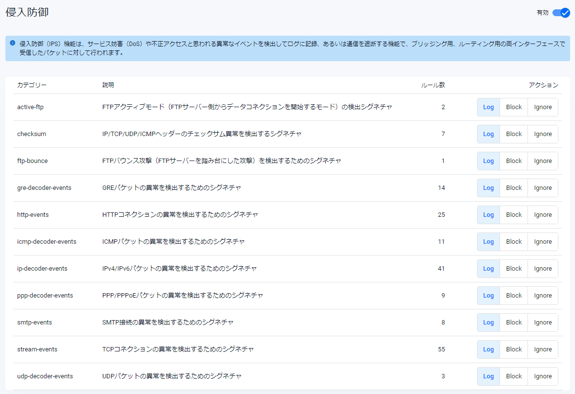 | ∧ | ゾーン、ネットワーク、ホスト項目右側の上向き矢印をクリックすると、該当項目が折りたたまれ、該当項目の内容や下位項目が表示されなくなります |