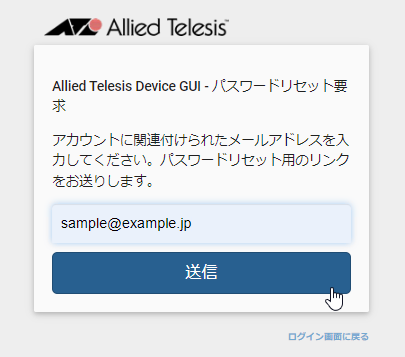 登録されているメールアドレスを入力して「送信」をクリックします。