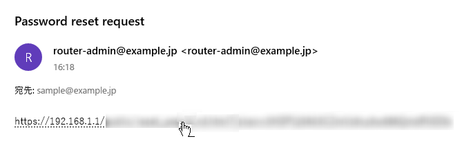 登録されているメールアドレスに届いたパスワードリセット用リンク(URL)を開きます。