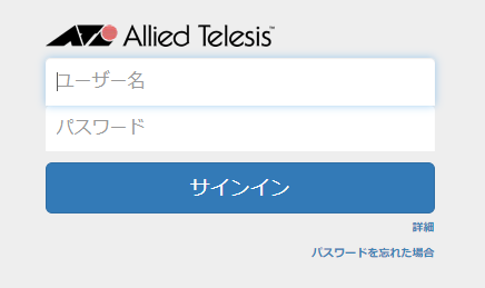 アクセスに成功すると次のログイン画面が表示されますので、デフォルトのmanagerユーザー、または、CLIのusername コマンドやWeb GUIのユーザー管理画面 で追加したユーザーアカウントでログインしてください。