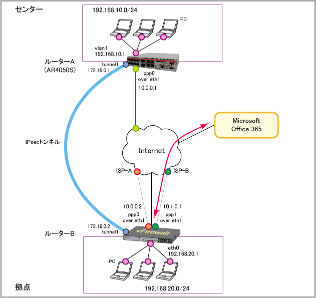 | WAN側IPアドレス(1) | 10.0.0.1/32 (ppp0) | 10.0.0.2/32 (ppp0) |