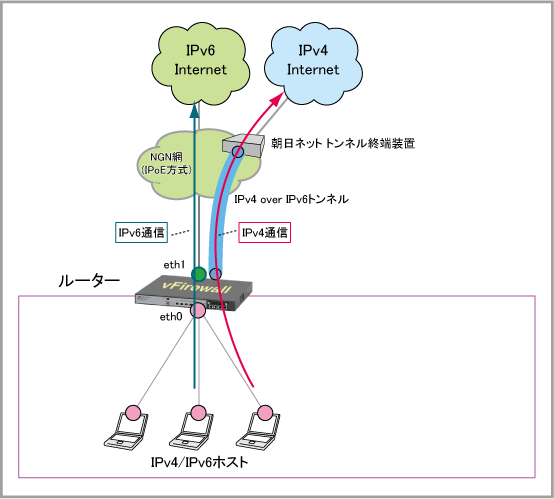 Note(注1) 本設定例では例示用IPアドレス等を使用しており、実際に設定する値とは異なります。実際の設定時には、ユーザー毎に朝日ネットから通知される各種情報をご使用ください。