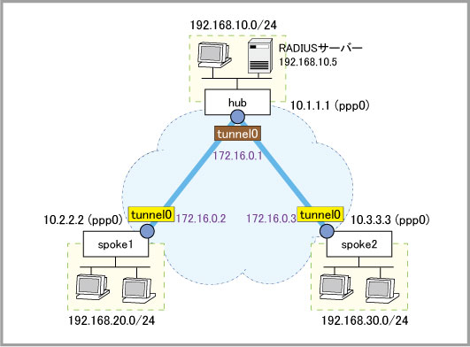 crypto isakmp key friend hostname node1 interface tunnel0 tunnel mode gre multipoint tunnel source ppp0 tunnel local name node1 tunnel endpoint 10.2.2.2 tunnel endpoint 10.3.3.3 tunnel protection ipsec ip address 172.16.0.1/28 ! ip route 192.168.20.0/24 172.16.0.2 ip route 192.168.30.0/24 172.16.0.3