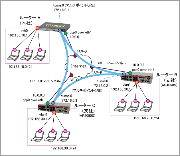 | WAN側(ppp0)IPアドレス | 10.0.0.1/32 | 10.0.0.2/32 | 10.0.0.3/32 |