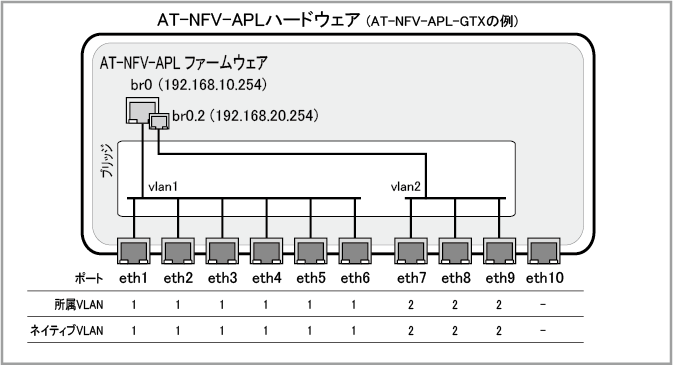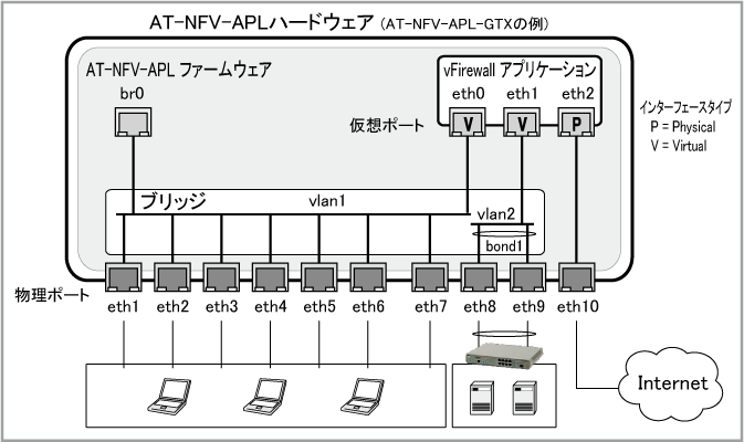 NoteAT-NFV-APL-GTXにおいて、速度の違う物理インターフェース(10/100/1000BASE-Tポートと100/1000/10GBASE-Tポート)を同じボンドに追加することはできません。
