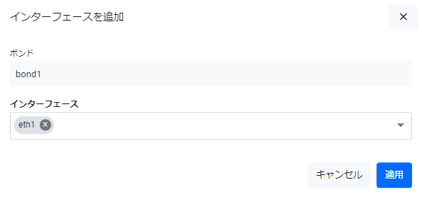 | 「適用」ボタン | 選択した物理インターフェースをボンドに追加して一覧画面に戻ります |