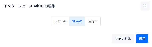| SLAAC | SLAACによってIPv6アドレスを自動設定する場合はこれを選択してください |