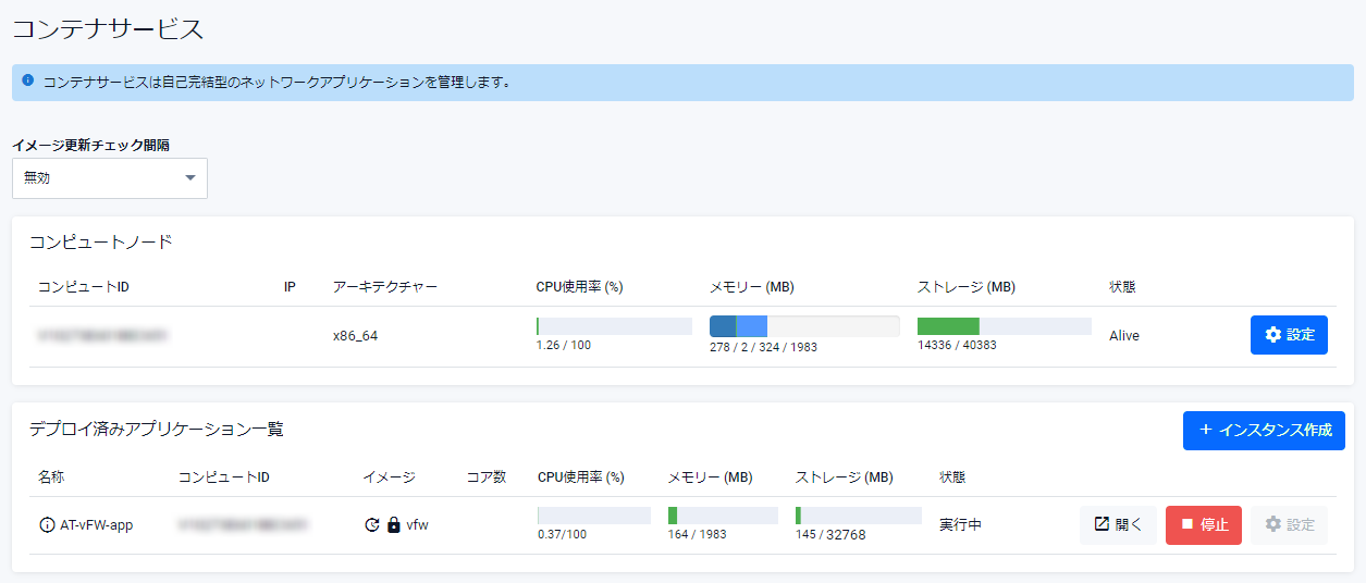 | コンピュートID | アプリケーション実行環境(AT-NFV-APL)の識別子(シリアル番号)を表示します |